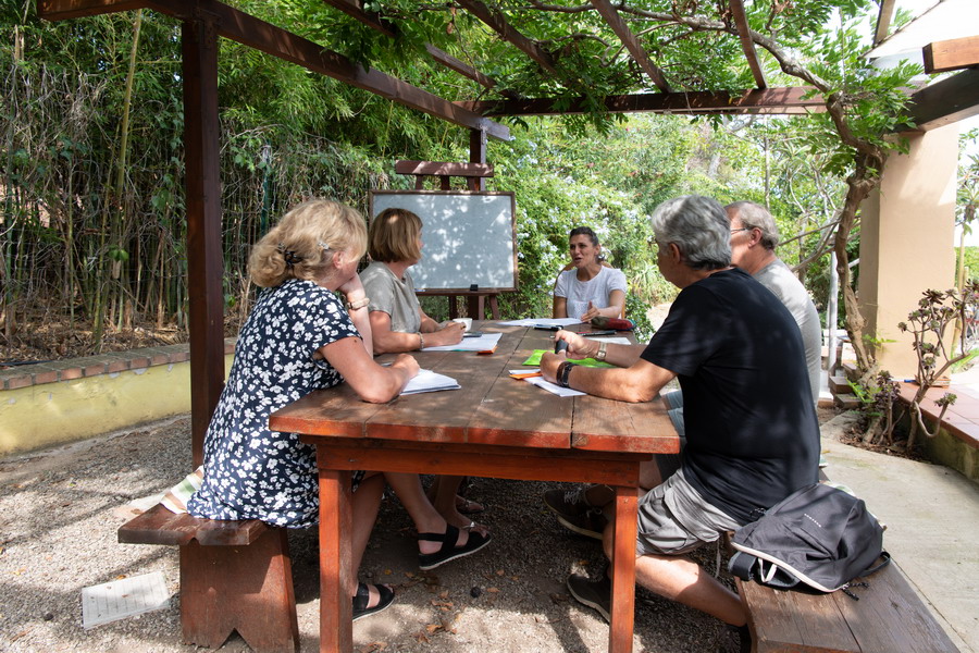 Lessen zijn buiten in de prachtige tuin, Rosario en Silvia doen er alles aan om je verblijf zo aangenaam mogelijk te maken, uitstekende leerkrachten die niet alleen geweldig les geven maar ook heel veel over het dagelijkse leven, de cultuur, de gewoontes en de geschiedenis weten te vertellen. De groepen zijn klein, iedereen komt aan het woord.