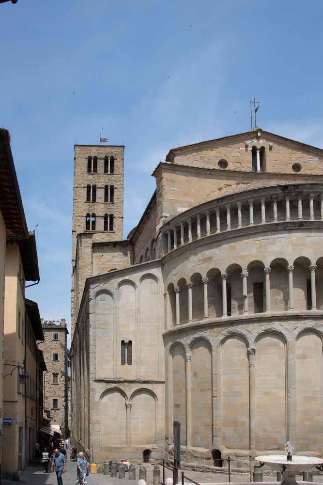 Bezienswaardig zijn het plein Piazza Grande en de kerk Santa Maria della Pieve (1008). Bovenop de heuvel ligt een park, het Fortezza Medicea en de Duomo. Vanaf hier heb je een prachtig uitzicht op de Toscaanse heuvels.