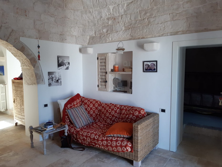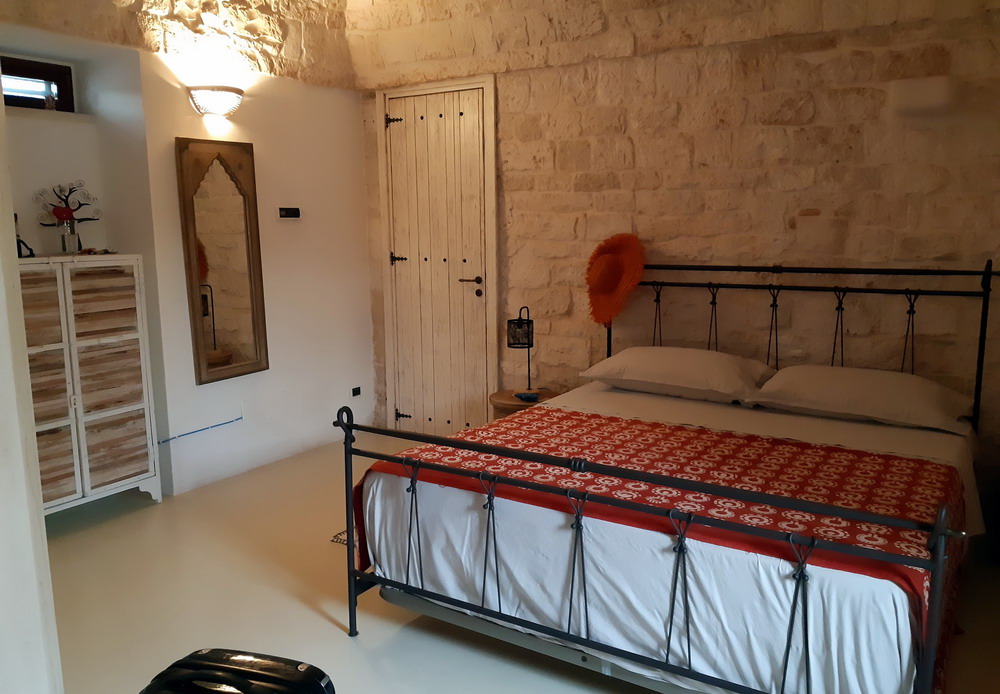 Dependance: het stenen bijgebouw heeft een eigen ingang en is direct naast de trulli gelegen. Het is een zelfstandig appartement met een gezellige, comfortabele en goed verlichte hoofdslaapkamer met een eigen badkamer/douche. Een extra kleine kamer met een kleine bibliotheek (waar je over Italiaanse literatuur, kunst, geschiedenis kunt lezen en rondleidingen en smaken van Puglia kunt ontdekken) fungeert als ontspanningsruimte. Het bijgebouw kijkt uit op de patio met pergola.