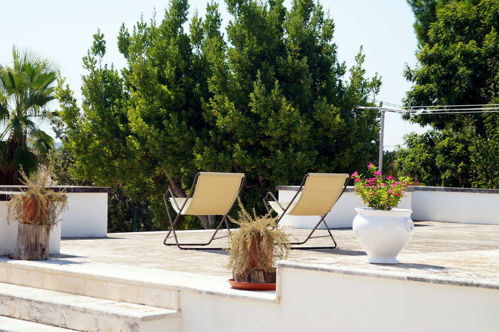Bij Cinzia kun je verblijven in een “oase” van rust. De grote tuin rondom het huis is omgeven door muren van gestapelde stenen die kenmerkend zijn voor dit gebied. Afhankelijk van het seizoen levert de boomgaard in de tuin vijgen, kersen, appels, peren, aardbeibomen, noten, hazelnoten en pistachenoten.